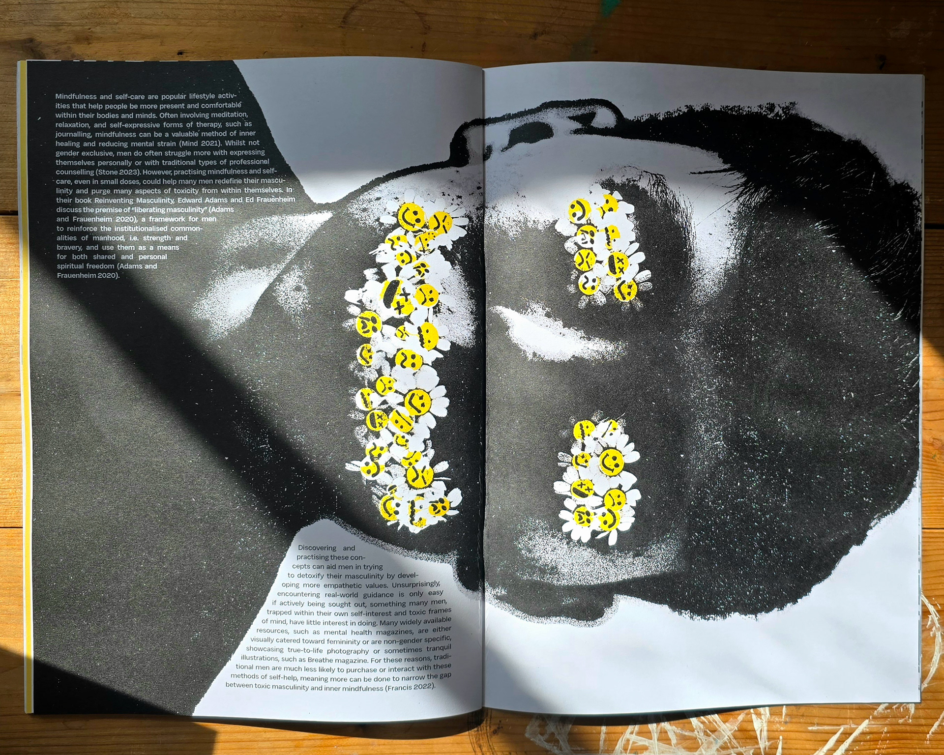 Editorial project centred around the topic of toxic masculinity and the mental health crisis facing men, featuring my dissertation on the same subject.