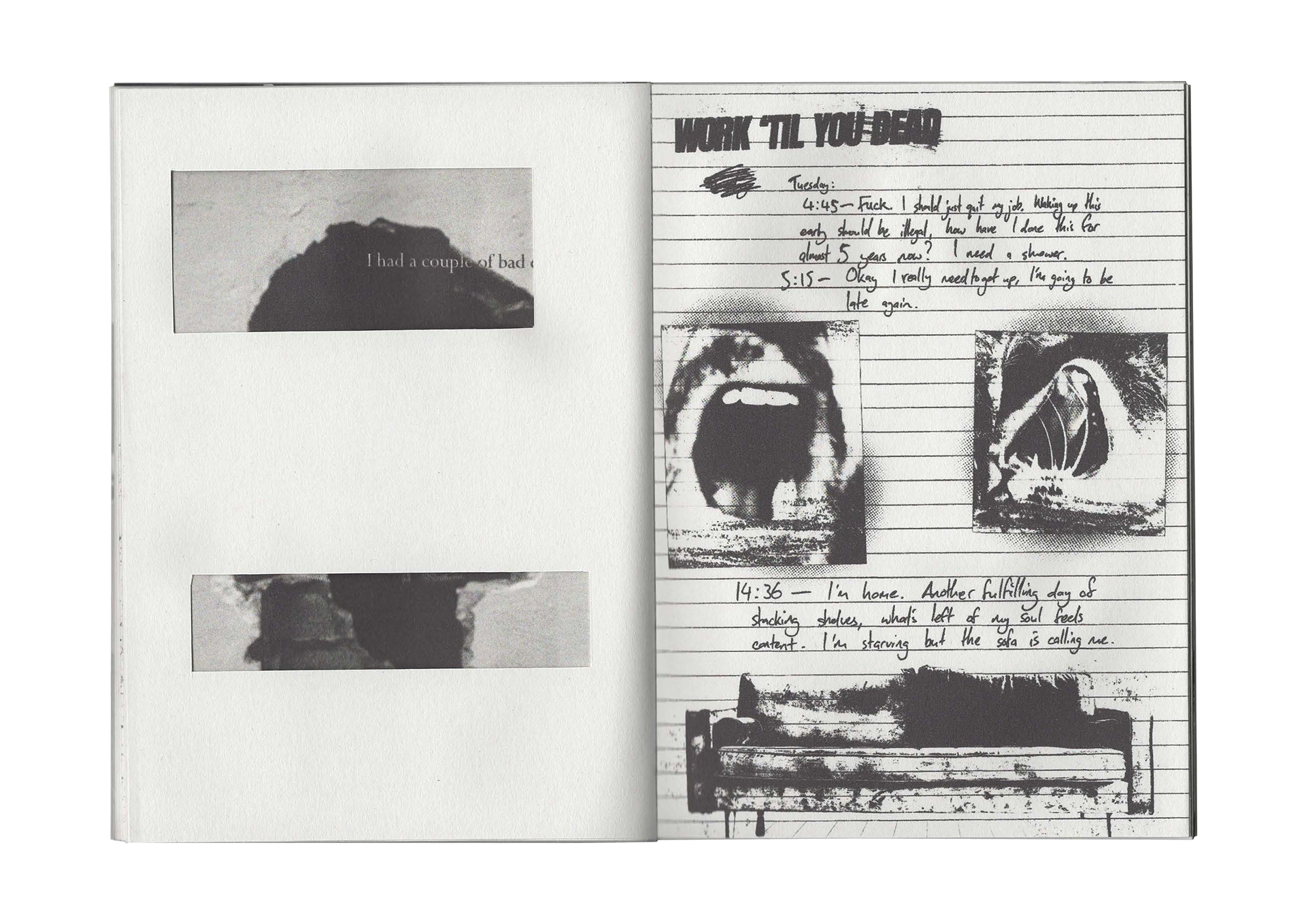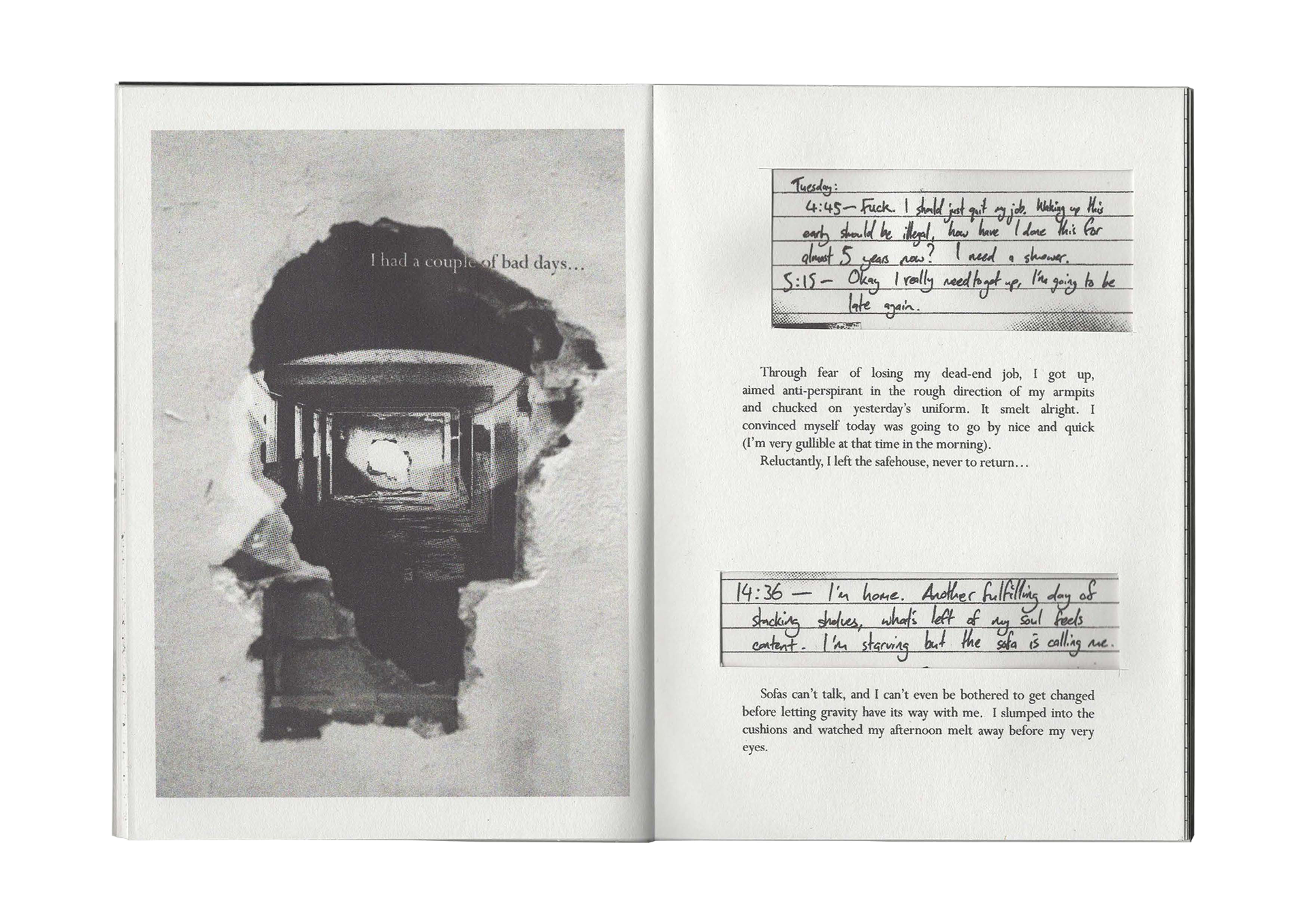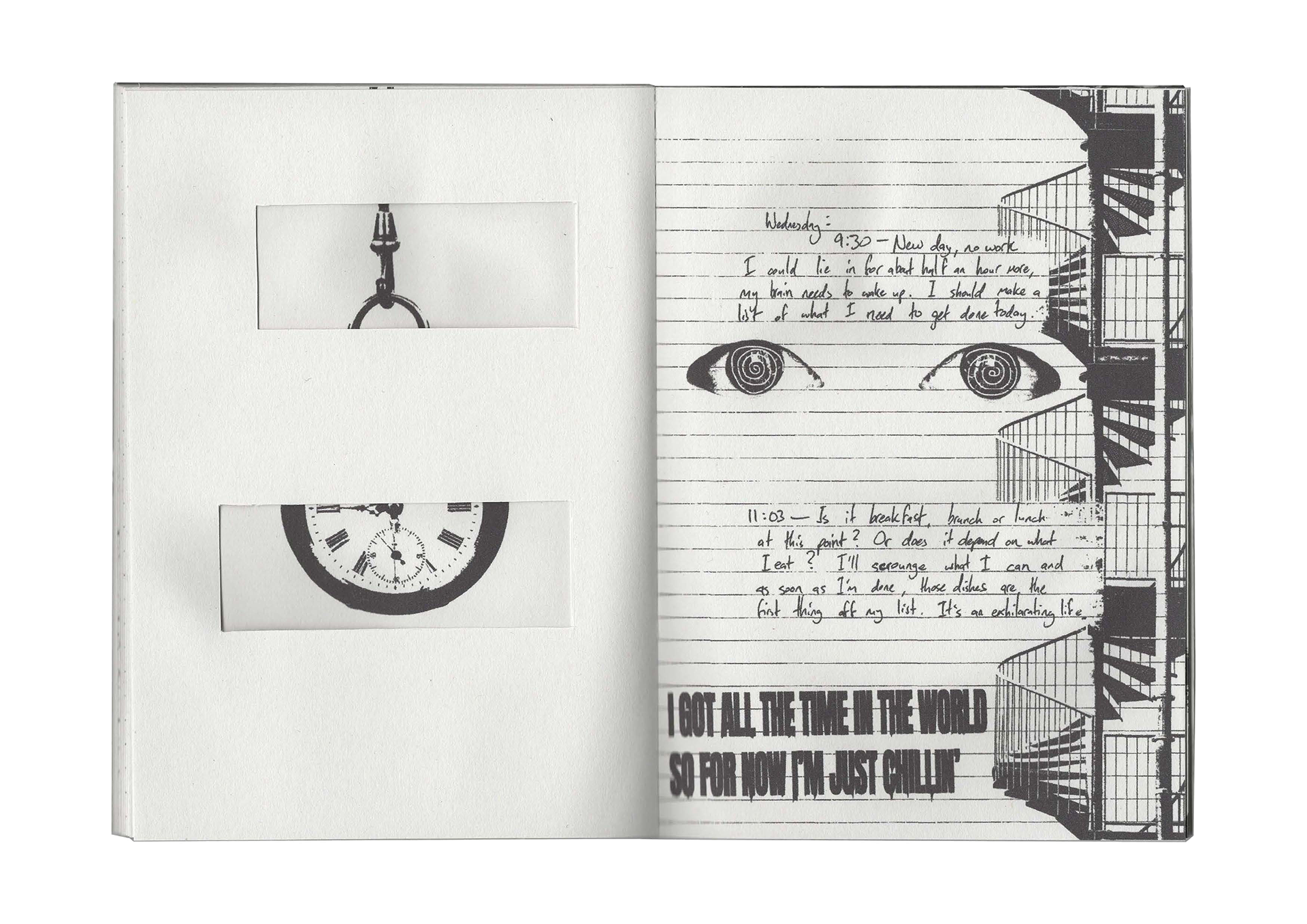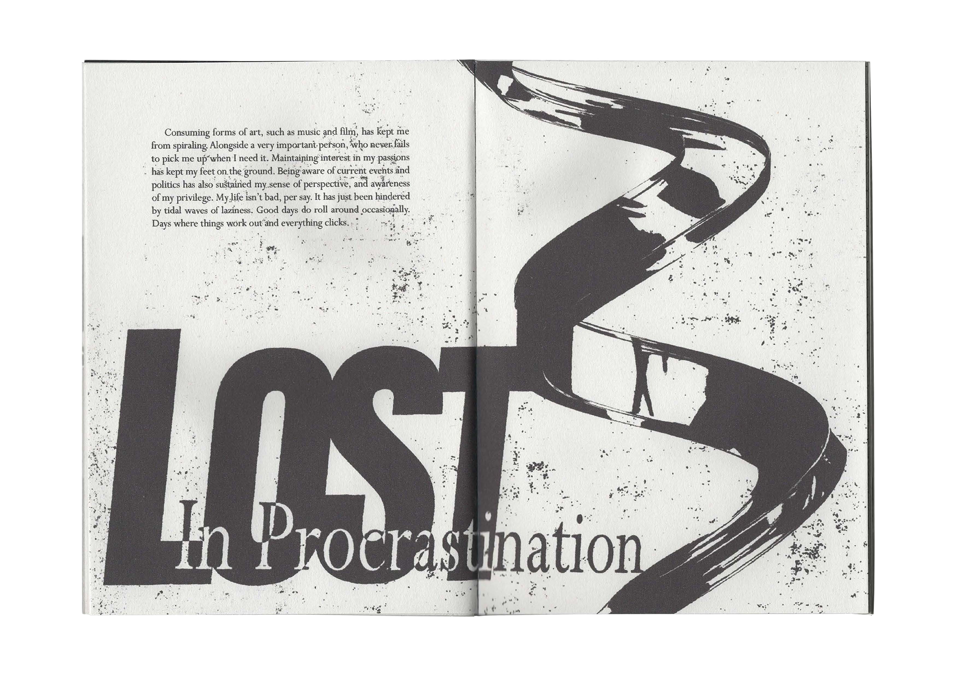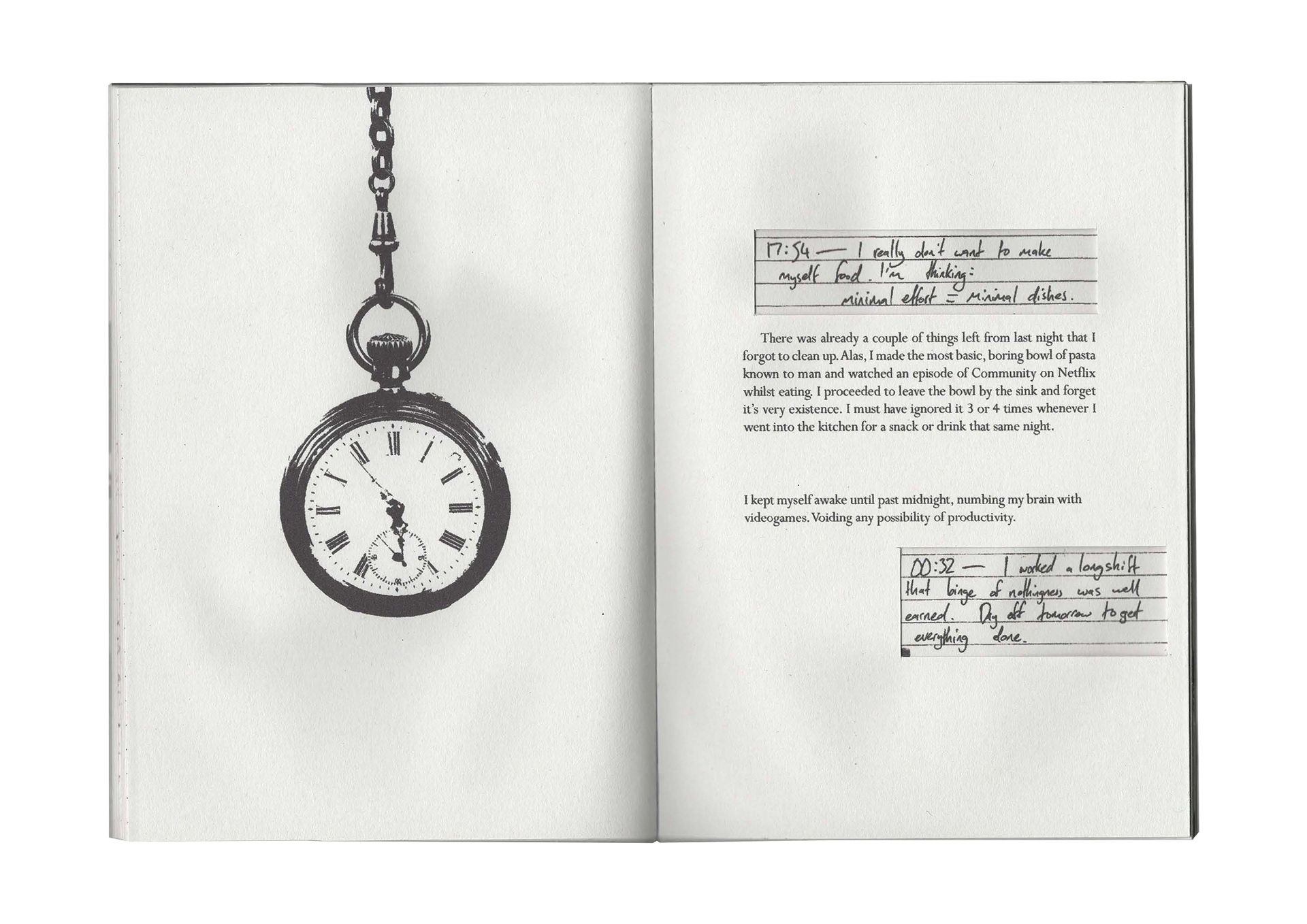 A hand-crafted book/journal, telling the story of a serial procrastinator.