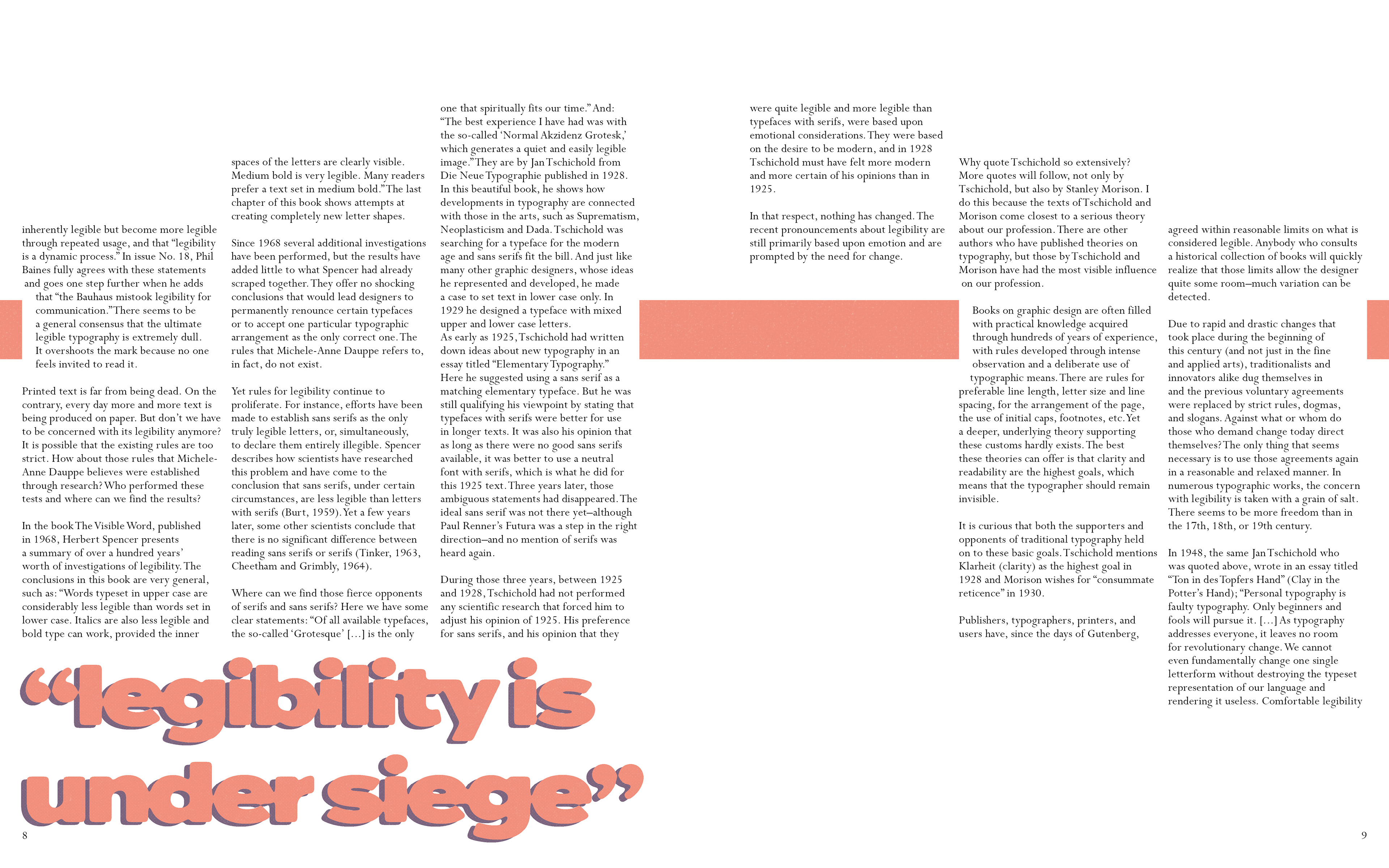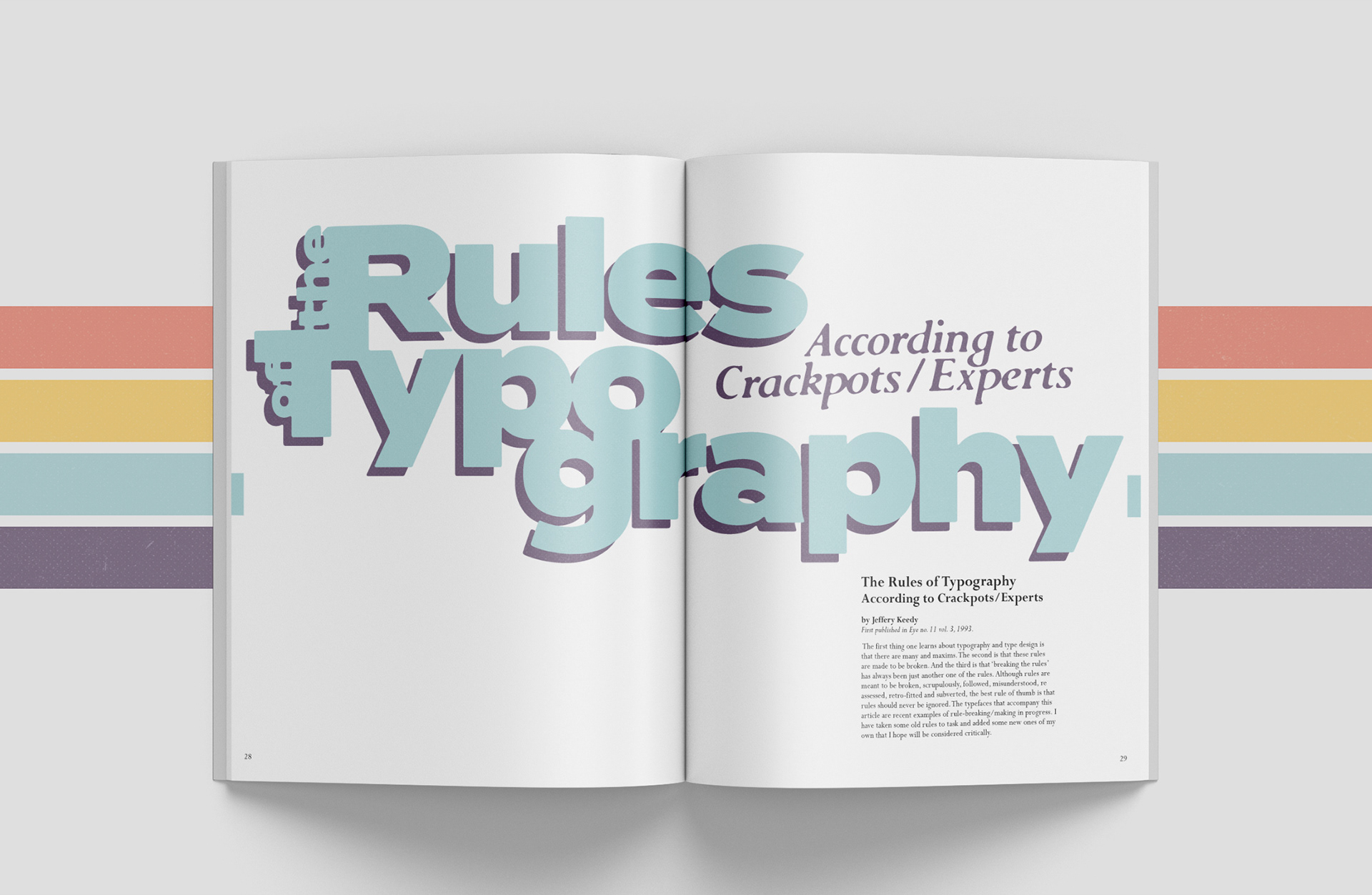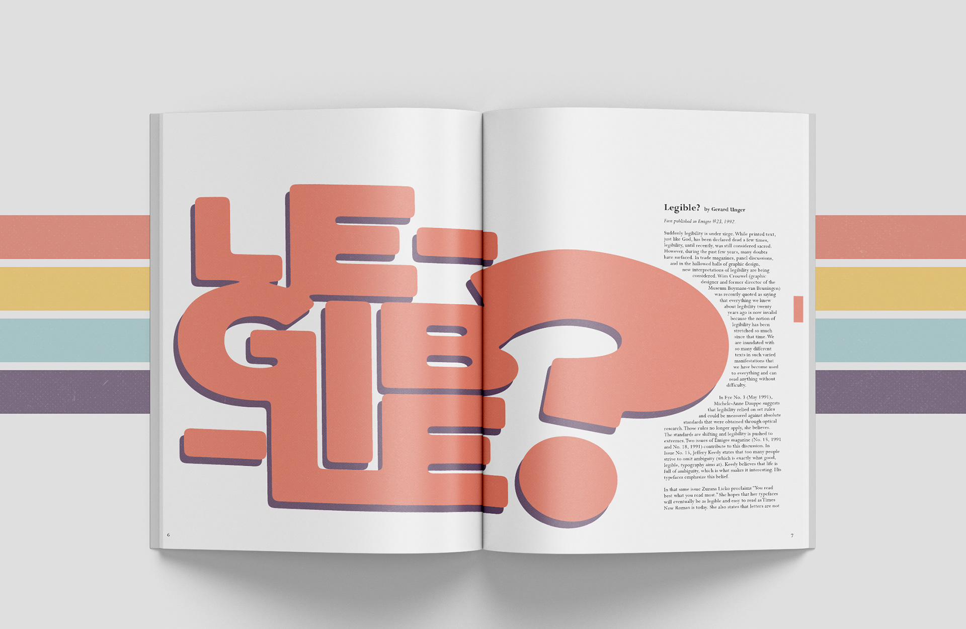 Magazine layout for typography-themed formal essays, aiming to pique the interest of young designers.